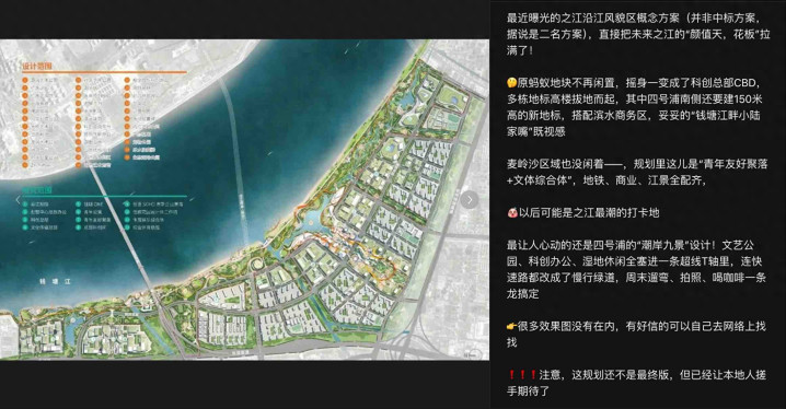 根据爆料:之江沿江风貌区概念方案(非中标方案)出炉。